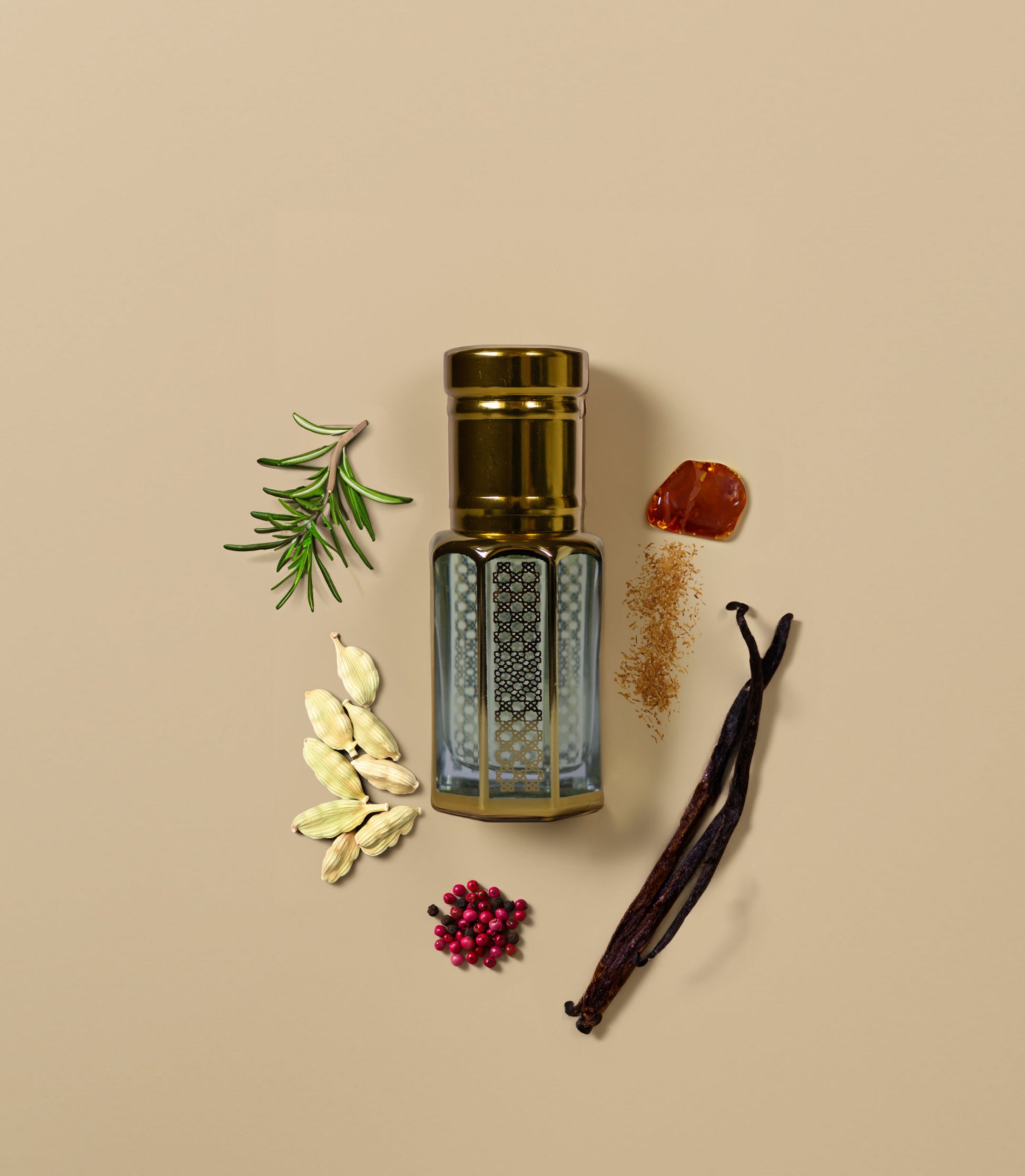 Top: Cardamom, Pink Pepper, Rosemary